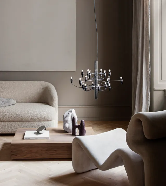 Vakker og enkel ¨lysekrone¨fra Flos.