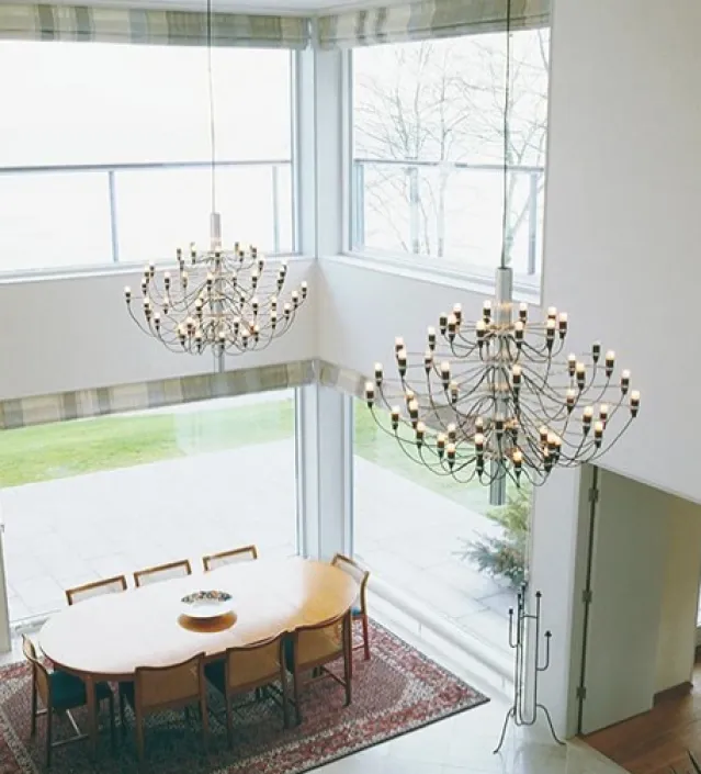 Vakker og enkel ¨lysekrone¨fra Flos.