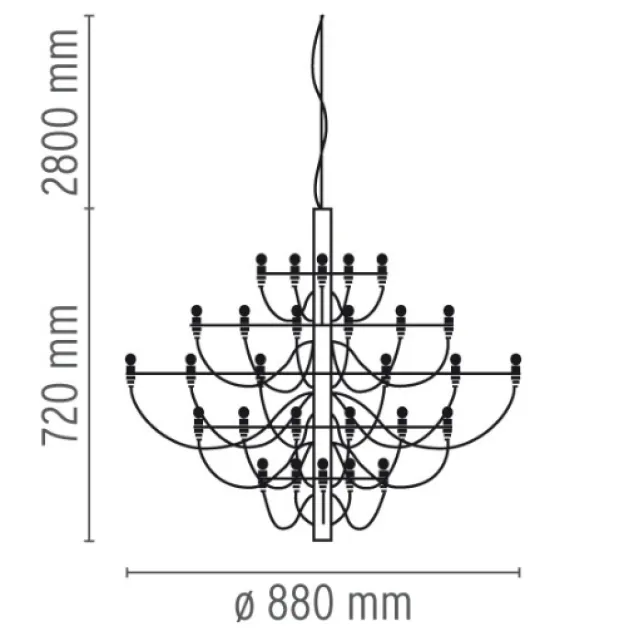 Dimensjoner: ø 880 mm x h 720/2800 mm.