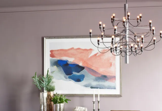 Vakker og enkel ¨lysekrone¨fra Flos.