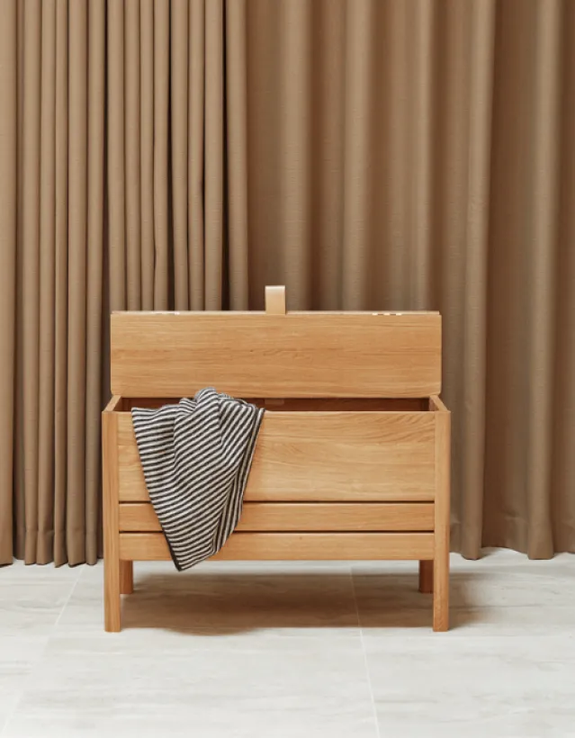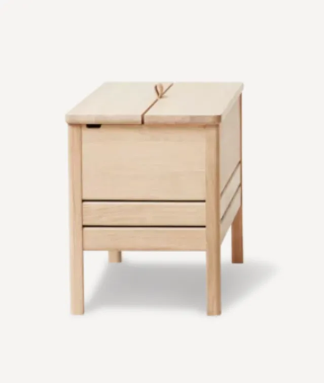 Super praktisk oppbevaringsbenk i tre.