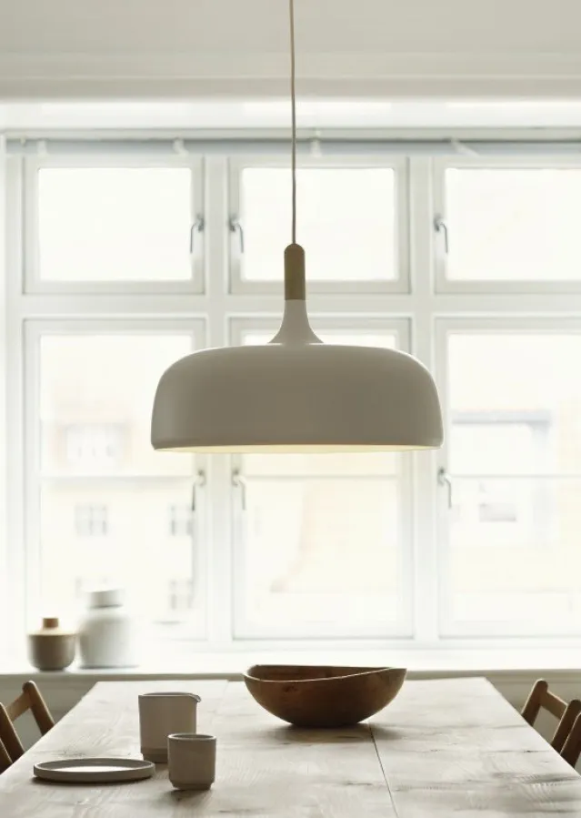 Denne pendelen tilhører en ny serie design som gjenskaper naturens skjønnhet i et funksjonelt objekt. Lampen er laget i aluminium og bøk eller valnøtt, og malt enten hvit, grå eller sort. Lampen kombinerer naturlige materialer med upretensiøse farger. Acorn er et naturlig supplement til moderne interiør, og en flott måte å lys opp bordplater, pulter og arbeidsflater.