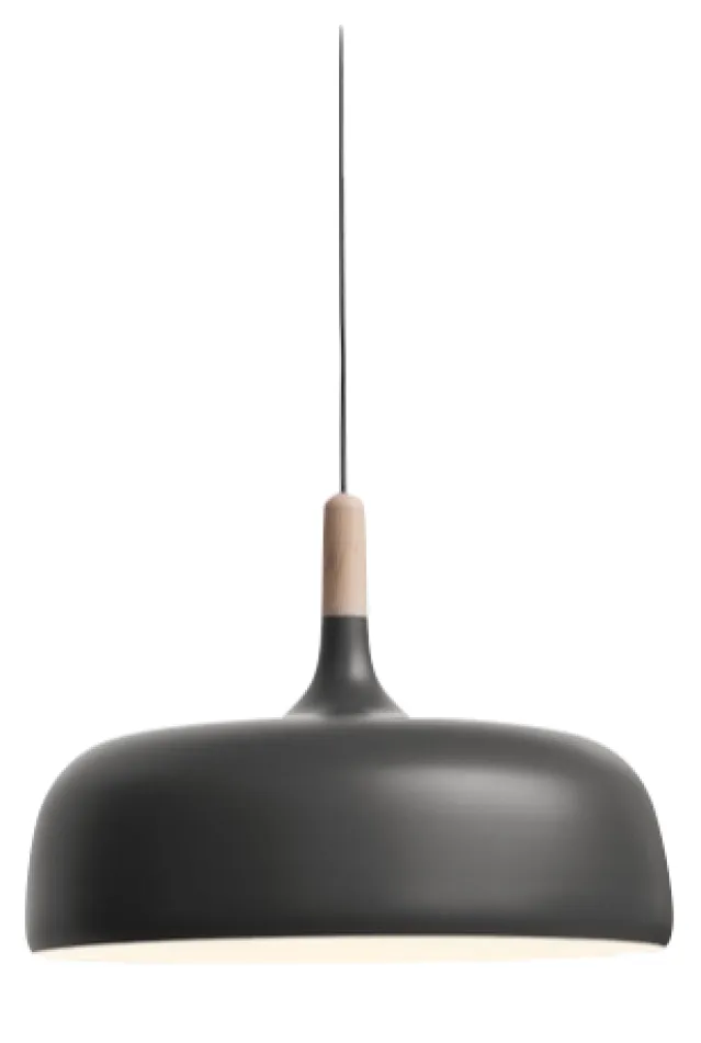 Denne pendelen tilhører en ny serie design som gjenskaper naturens skjønnhet i et funksjonelt objekt. Lampen er laget i aluminium og bøk eller valnøtt, og malt enten hvit, grå eller sort. Lampen kombinerer naturlige materialer med upretensiøse farger. Acorn er et naturlig supplement til moderne interiør, og en flott måte å lys opp bordplater, pulter og arbeidsflater.