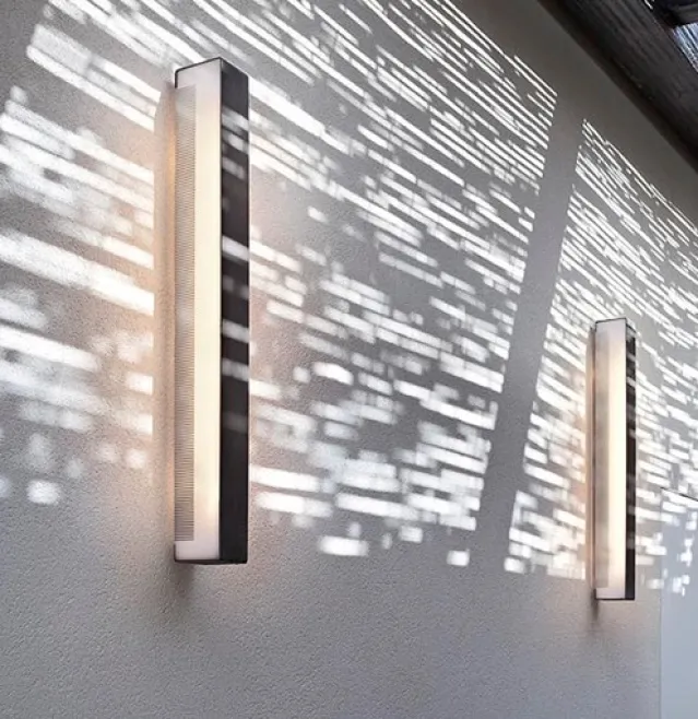Innendørs eller utendørs vegglampe som gir direkte/indirekte belysning. Opalin polykarbonat deksel. Bøyde ståldeksler. Deksel i rustfritt stål med sateng finish. Opalin polykarbonat veggfeste. Presset og galvanisert plateballaststøtte.