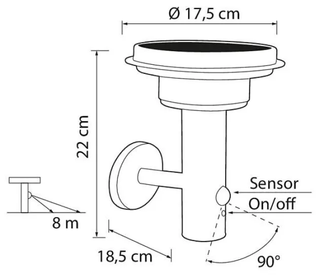 - 3. innstilling lyser lampen opp kun ved bevegelse 600 lumen før den skrus seg av igjen