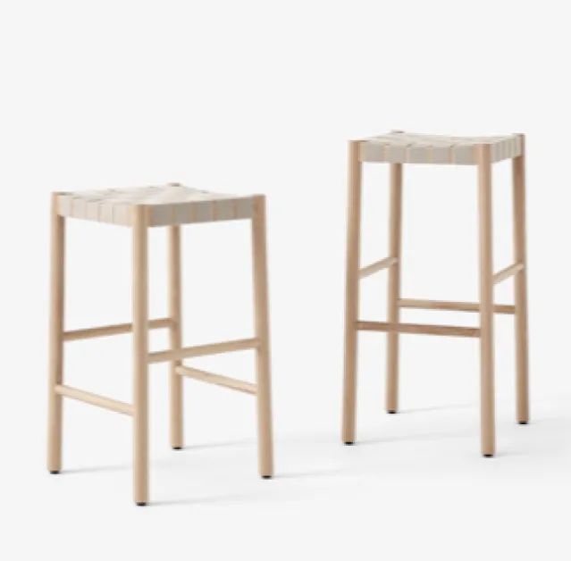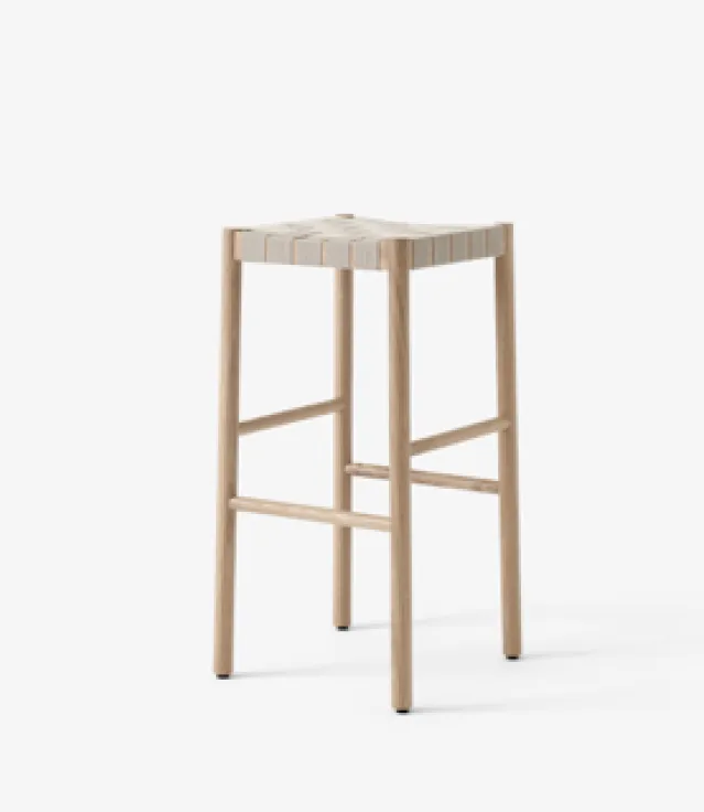Betty kommer i to høyder og er i fargen eik med et sete laget av synlige bånd laget av naturlige linfibre.