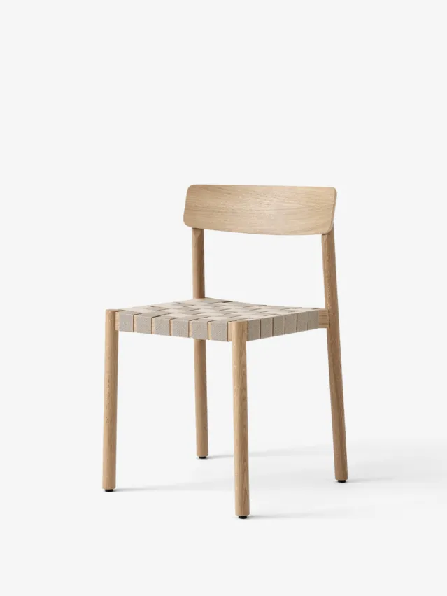 Denne stablebare stolen er oppkalt etter Betty Nansen-teatret i København, og kommer med et sete laget av synlige bånd laget av naturlige linfibre. Her i fargen eik.