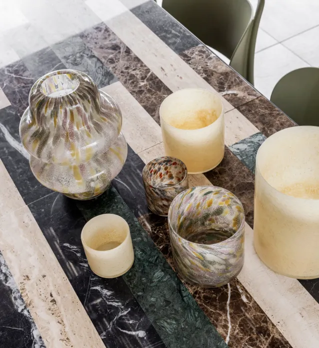 Calore er laget av tykt glass med små luftbobler i.