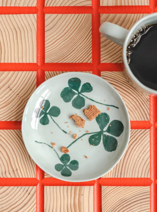 Håndlaget tallerken Clover i porselensleire bringer et snev av flaks rett til bordet ditt. Tallerkenen kommer glasert. Kombiner gjerne med kruset i samme serie.