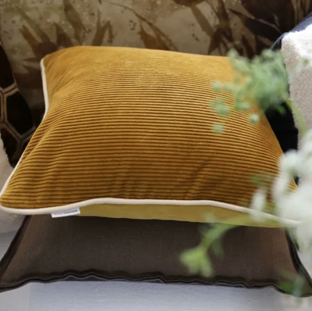 Ensfarget kordfløyelspute, med kontrast piping i kantene.