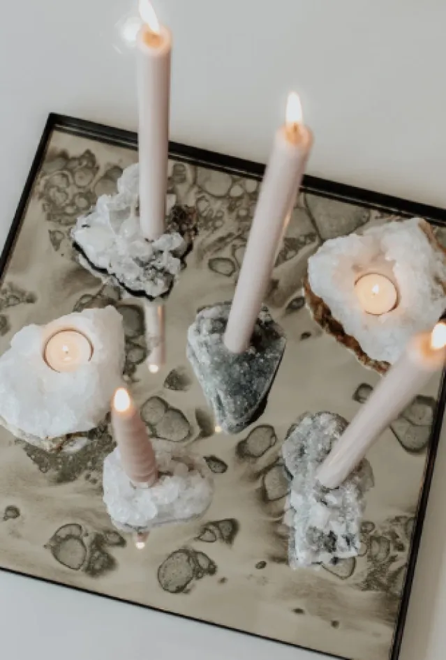 Lysestaken er laget av et naturmateriale og hver lysestake kuttes for hånd. Resultatet er at hver lysestake er unik i farge, form og størrelse.