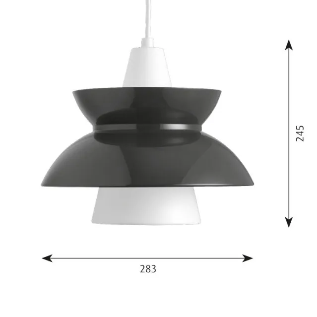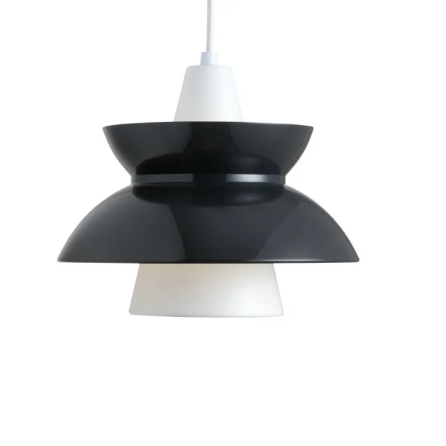Konsept: Armaturen gir primært en nedadrettet og myk belysning via den hvitlakkerte kjegleformede reflektoren på innsiden. Den ytre reflektoren og hovedskjermen bidrar til å dirigere lyset oppover og nedover, samtidig som den gir et mykt og diffust lyst. Innsiden av skjermen lyses opp via en åpning i den mindre kjegleformede reflektoren.