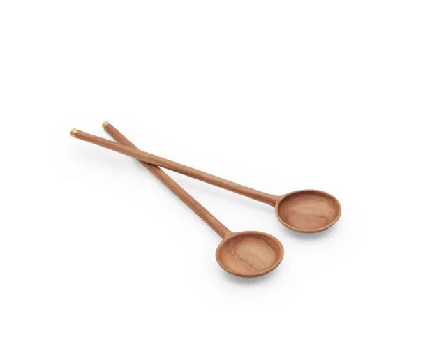 Nydelig salatbestikk i Teak fra Skagerak. Utført med messing på endene.