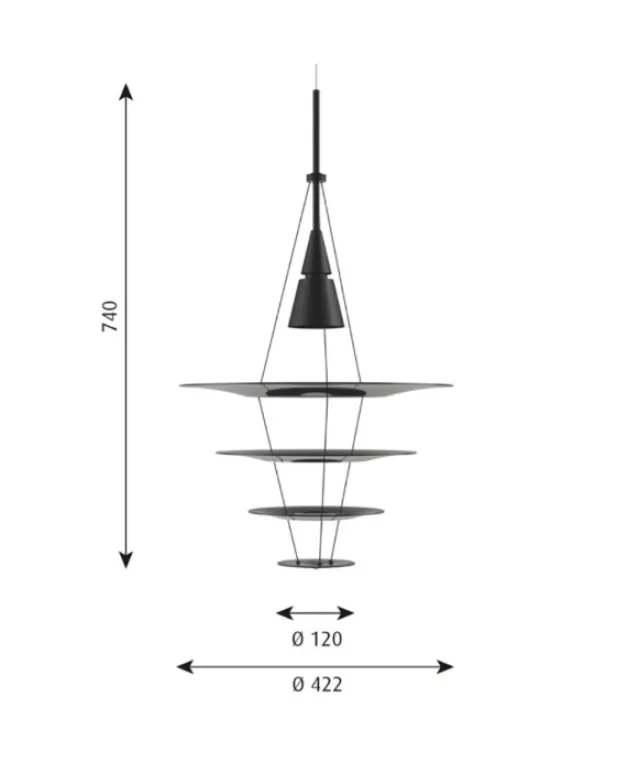 Konsept: Armaturen utsender et blendfritt, mykt og komfortabelt nedadrettet lys. Skjermens design sikrer jevn belysning i rommet. Den matte overflaten øverst sprer lyset, mens den glinsende overflaten nede sikrer optimal refleksjon.