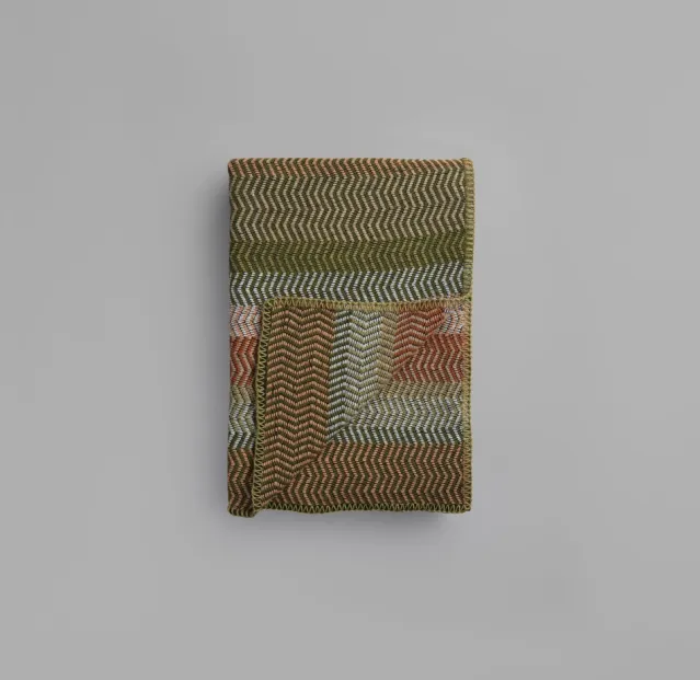 I denne nye tolkningen er den typiske repeterende fargerytmen noe oppløst og fargene skifter i en randomisert, myk og slyngende sikksakk.