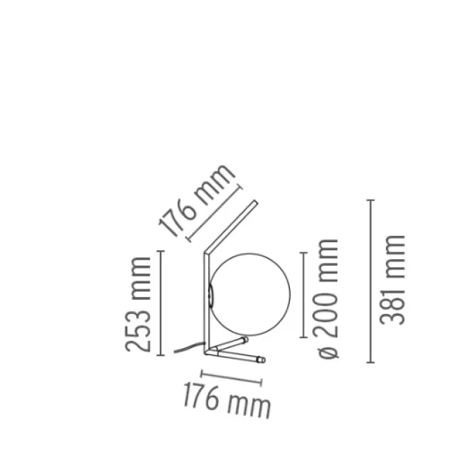 Mål : Ø 200 x B 176 x H253/381 mm