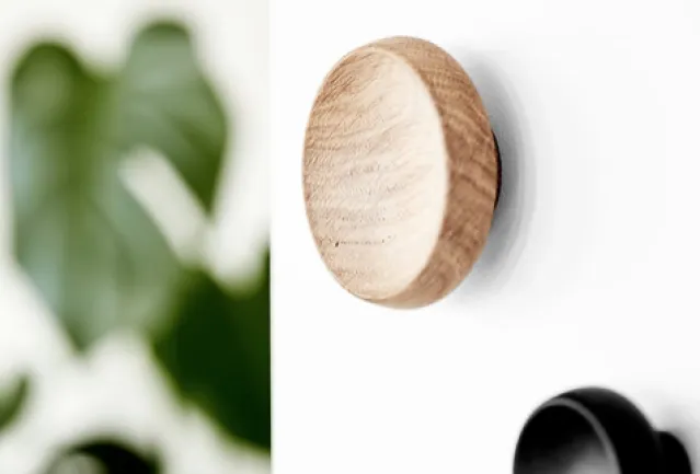 Cork er laget av solid eik og kan brukes både som krok på veggen og som grep på skuffer og dører, hvor de myke formene og det vakre naturmaterialet gjør at du kan skape en personlig garderobe med ditt helt eget uttrykk. Velg mellom to størrelser.