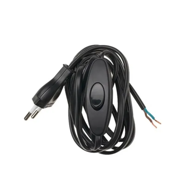 Sort lampettledning med bryter og støpsel. 2,5m