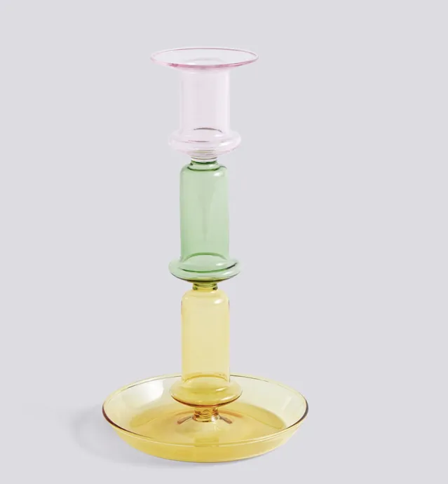 Farget borosilikatglass skaper en elegant og distinkt måte å vise lys i HAYs Flare Candleholder. Ideell for bruk med HAY-lys i vinduskarmen eller på et bord for å skape stemning i hjemmet.