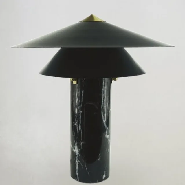 Lekker bordlampe i sort marmor med gulldetaljer. Meconopsis-kolleksjonen er den første serien av lamper fra Hein Studio. En tidløs samling med to lampeskjermer kombinert for å reflektere lyset mykt, skapt for å lyse opp hjørnene i hjemmet ditt. Estetisk minimalisme kombinert med messing, stål og onyx.