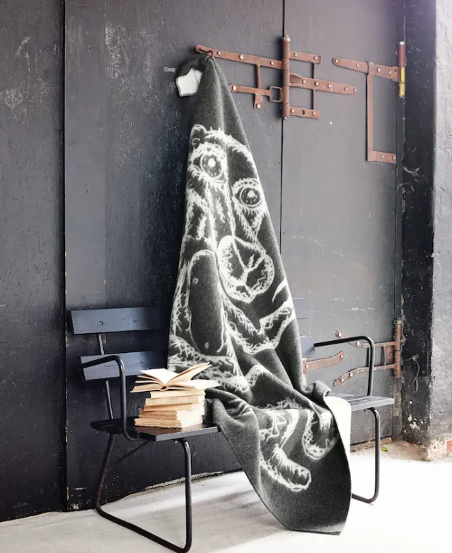 Deilig ullpledd med karakteristisk design av Bjarne Melgaard.