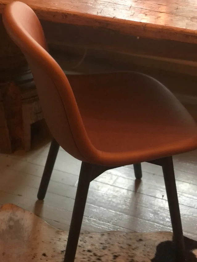 Neu 13 er en svært komfortabel spisestue-stol – og i cognacfarget skinn får den et utrolig fint uttrykk.