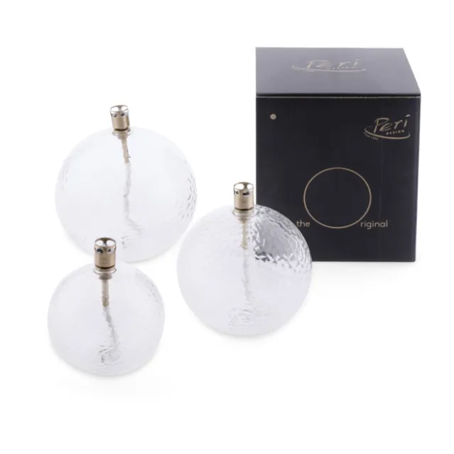Trakten fra Peri Design gjør det enklere å fylle oljelampene, og oljen fra Peri Design er luktfri og den soter ikke.
