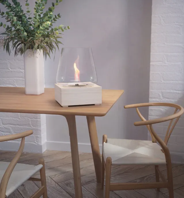 Poppy bordlykt er designet av Therese Johaug for Tenderflame. Stilren lykt – og en flott flamme.