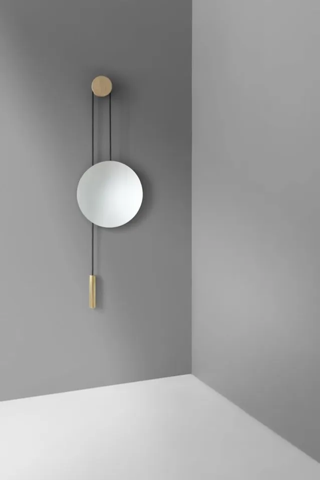 Rise & Shine Wall Mirror benytter former med en asymmetrisk sammensetning for å skape en utfoldende funksjon.