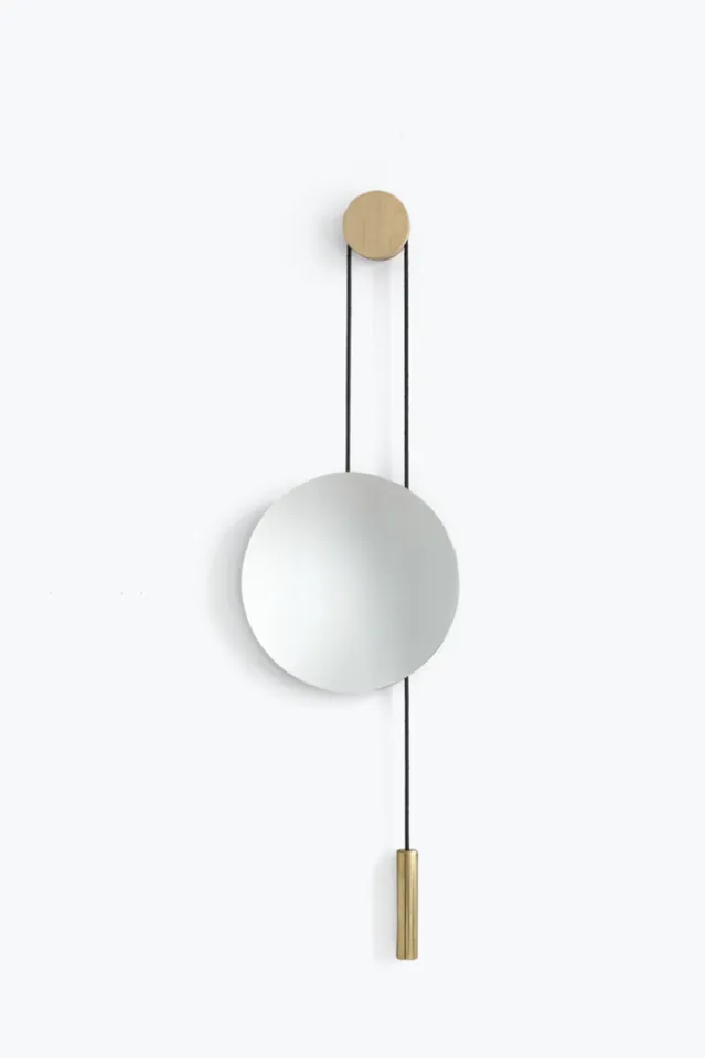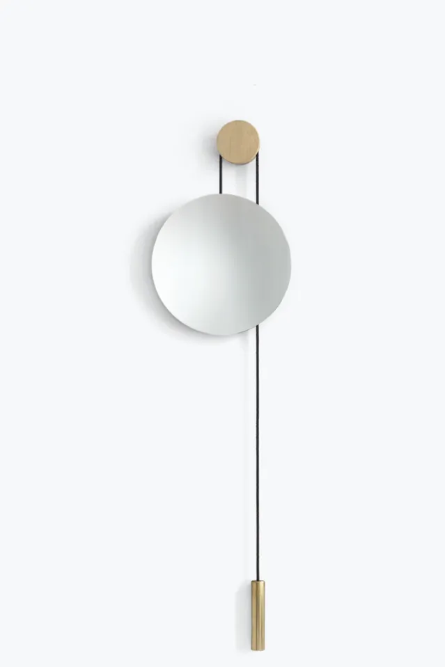 Et mykere eikesenterpunkt gjør at speilet og messingkomponentene kan presse og trekke mot hverandre, noe som gir et stadig skiftende reflekteringspunk. Et speil som også skaper en spennende interiørskulptur.
