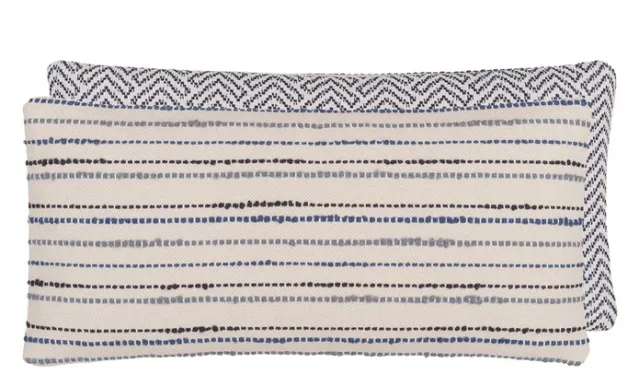 Denne nye utendørsputen av William Yeoward har en chevronvevd front som vender tilbake til en teksturelt vevd semi-plain i indigo blå toner. Denne rektangulære utendørs/innendørs puten også vaskes i maskin. Alle uteputer kommer med en praktisk hulfiberpute. Som med alle våre utemøbler, vær oppmerksom på at denne puten ikke bør stå ute i tøffe værforhold eller i direkte sollys i lange perioder, og man bør passe på å tørke trekket og puten helt hvis de blir søkkvåte.
