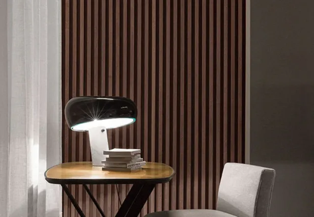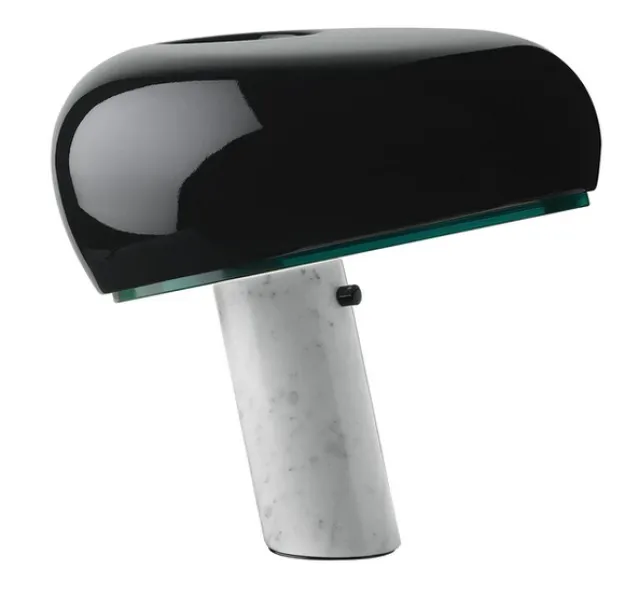 Snoopy ble designet av Achille og Pier Giacomo Castiglioni i 1967. Lampen gir et direkte lys ned på bordet ,- skjermen er i emaljert metall og med en fantastisk hvit carrera-marmor base.