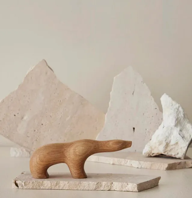 Isbjørnungen i eik er en majestetisk figur i en abstrakt design som folder seg mykt og skånsomt ut.