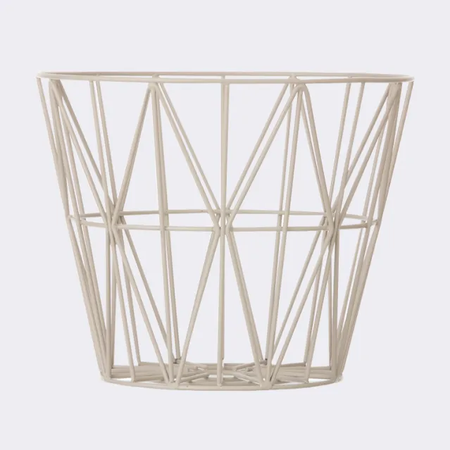 Oppbevaringskurv i offwhite jernvaier. Fungerer også kjempefint som bord med en rundplate i eik i samme serie.