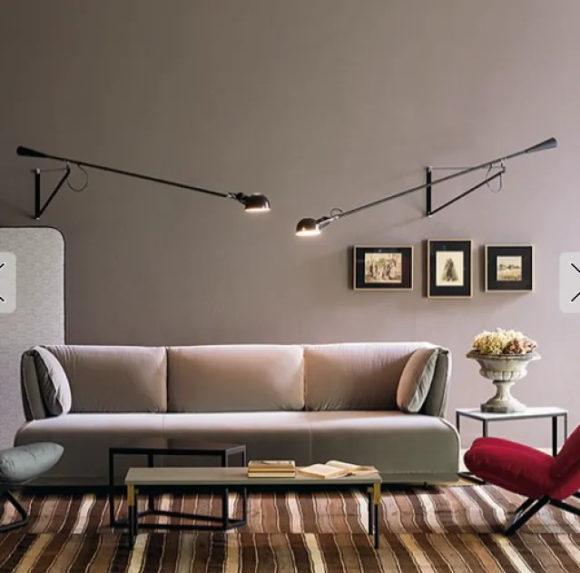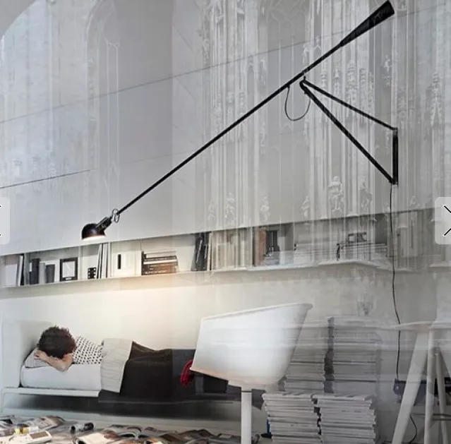 En flott vegglampe med stilig design som gir direkte lys. Lakkert stål. Justerbar arm og reflektor.