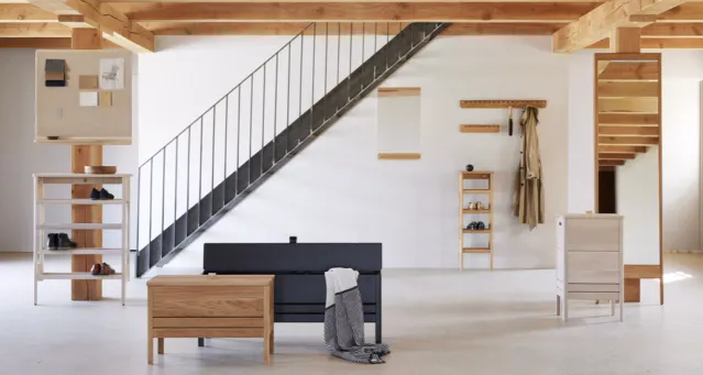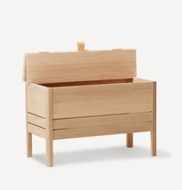 Super praktisk oppbevaringsbenk i tre.