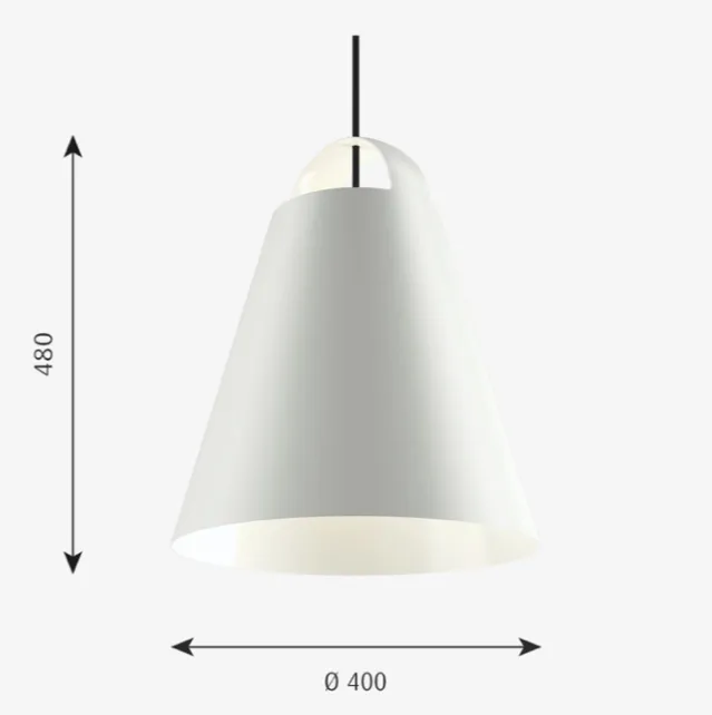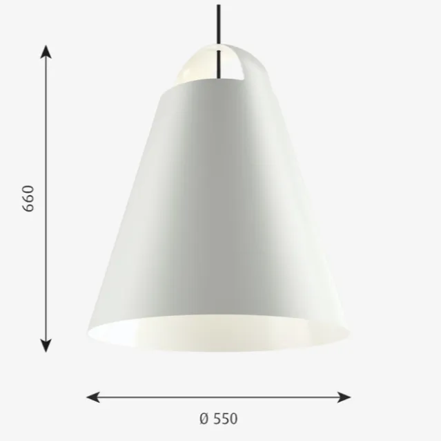 Armaturen gir et nedadrettet mykt og komfortabelt lys. Den kjegleformede fasongen og den matte, hvitlakkerte innsiden bidrar til spredning av lyset. Åpningen i toppen av armaturen gir en dekorativ egen opplysning av buen øverst og gjør at armaturen visuelt beholder hele sin form både i tent og slukket tilstand.