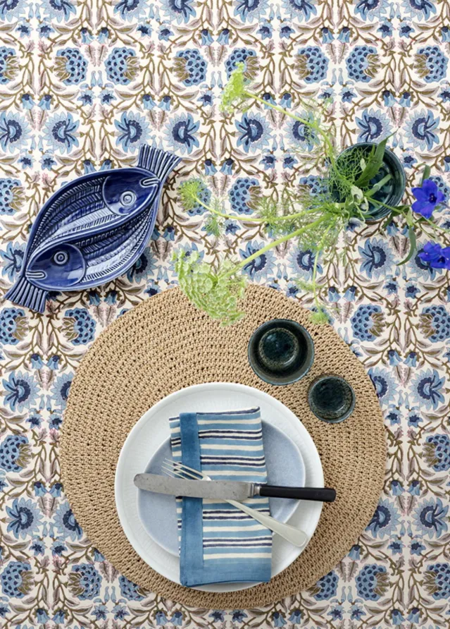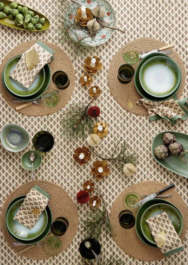 Flotte, store runde bordbrikker i natur. Også fin som en liten duk.