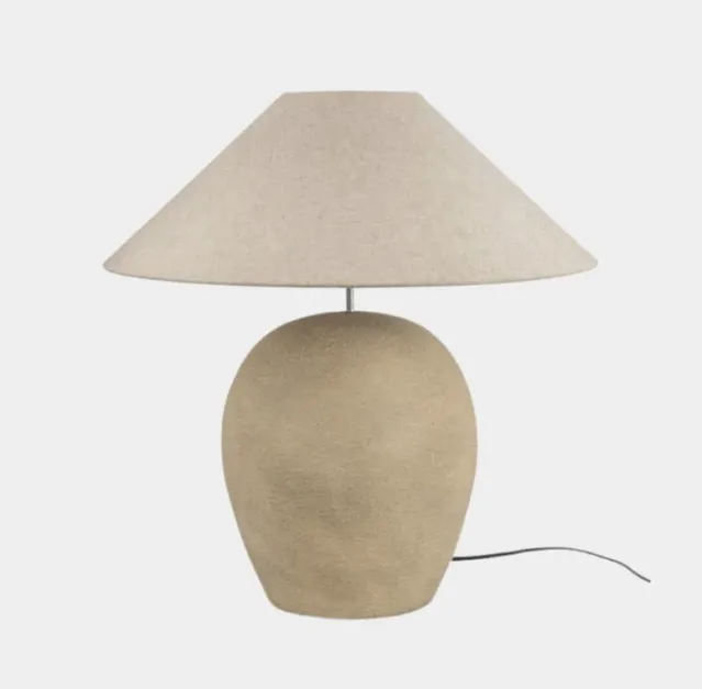 Flott stor bordlampe i håndlaget keramikk med skjerm.