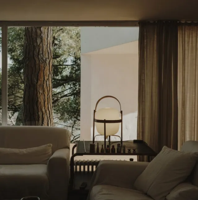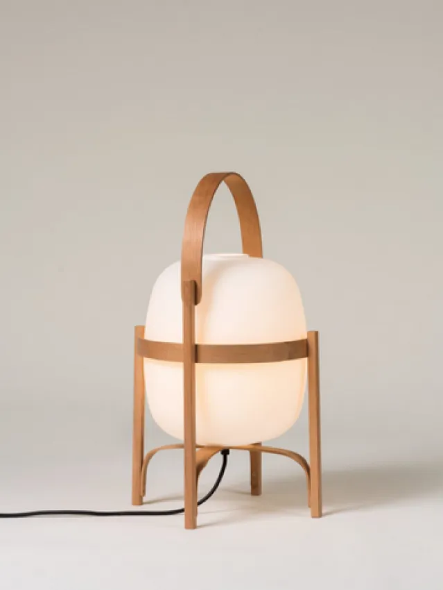 Designer Miguel Milá spaserte gjennom Barcelona på 1960-tallet, og fant en forlatt opalklode foran en glassfabrikk. Han plukket det opp, og med årene ble det hjertet til denne store familien. Som navnet antyder, ble Cesta (spansk for «kurv») designet for å hold dette skjøre stykket. Inspirert av de tradisjonelle lyktene som lyser opp hjem langs kysten, landlige eiendommer og åpne terrasser, er Cesta en av de mest ikoniske lamper laget av Miguel Milá. Denne lampegjenstanden kan enkelt tas opp og bæres, ideell for både bordplater og gulv. Det opalglass skyggen støttes av en vakker kirsebærtrestruktur. Den produseres manuelt av europeiske håndverkere, ved bruk av tradisjonell damp bøyeteknikker for treverket, som er delikat polert og solid satt sammen. Til tross for sin egenart (eller rettere sagt på grunn av) er lampen «helt i tiden».