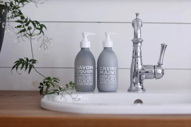 En flytende håndsåpe laget med kokosnøttolje og organisk olivenolje, som naturlig er rikt på glyserin. Såpen renser skånsomt huden og dufter varmt av tre og krydder.