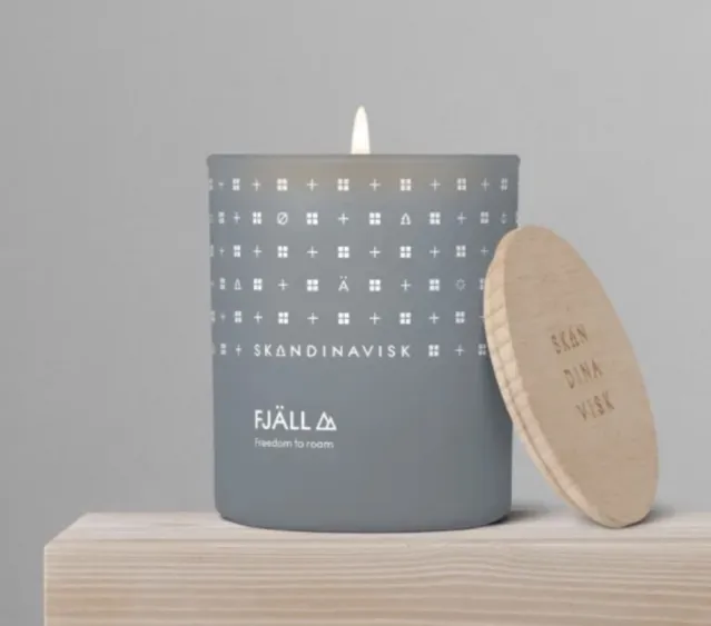 Duftlyset FJÄLL med duftnoter av lyng og timian, malte bær og blader – sprer lyset diskret og en gir en deilig duft i hjemmet mens det pynter opp i interiøret !