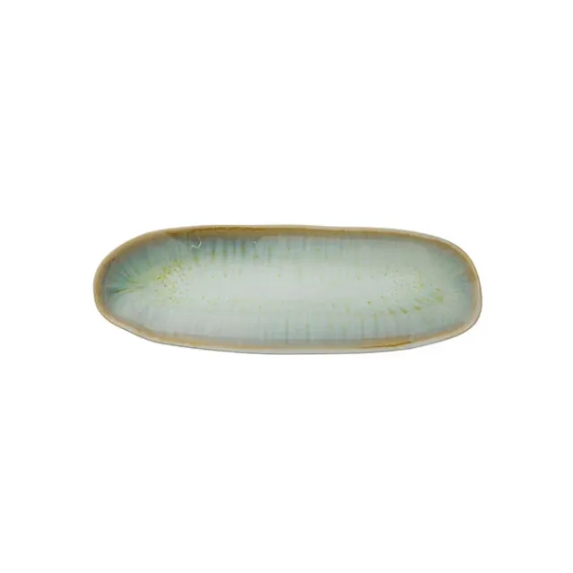 Care Tåler oppvaskmaskin. Mikrobølgeovn anbefales ikke.»>Utsøkt keramisk serveringsbrett delikat håndglasert i grønne toner.