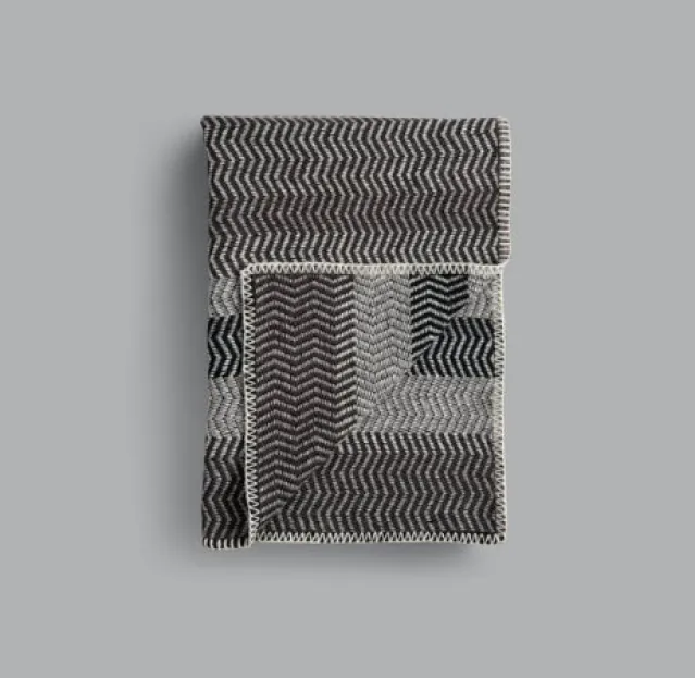 Fri pledd og puter er inspirert av de tradisjonelle løperne man finner variasjoner av rundt om i nesten hver fjellhytte i Norge. I denne nye tolkningen er den typiske repeterende fargerytmen noe oppløst og fargene skifter i en randomisert, myk og slyngende sikksakk.