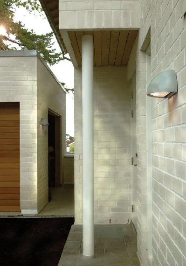 Utelampe med lysutgang ned. Aluminiumstøp. Polykarbonat med optisk struktur.