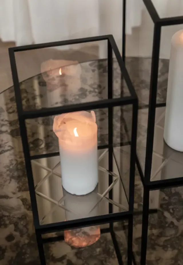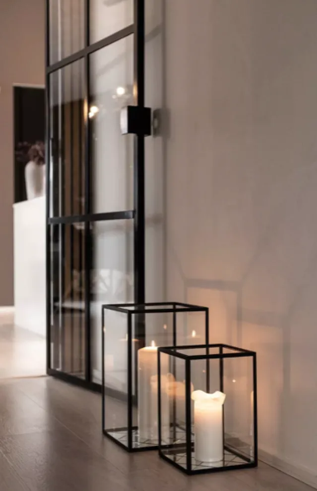 Harlequin lanternen kombinerer det klassiske og elegante med det mer rustikke. Lanternens speiloverflate lar den vakre gløden fra de levende lysene skape vakre og dansende refleksjoner. Den er åpen i toppen og kan ikke åpnes på sidene.