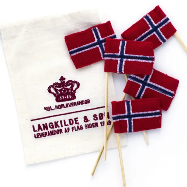 Kakeflaggene kommer i sett av 5 stk – og ligger i en praktisk tøypose som du an oppbevare de i når de ikke er i bruk.