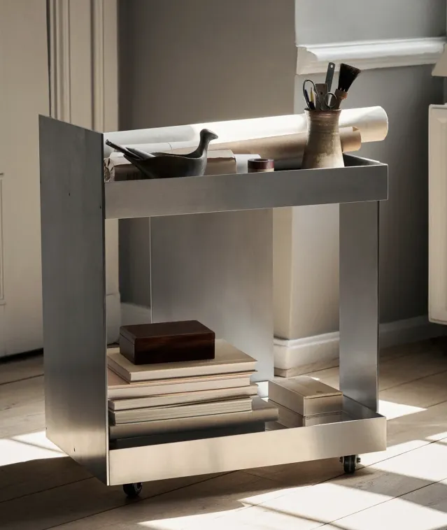 Info: Brushed aluminium. Flat packed. Weight capacity max. 20 kg. Registered design