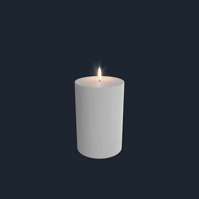 Pillar Candle er laget av ekte voks med en elektronisk 3D flamme som forsiktig flimrer, og skaper et mykt og innbydende lys. Lyset er batteridrevet, dimbart og kan styres med en manuell bryter, fjernkontroll eller en timer.