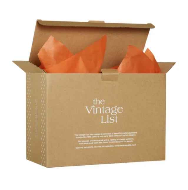 Vasen fra The Vintage List er pakket i gaveeske. Hver vase er håndblåst og håndgravert.